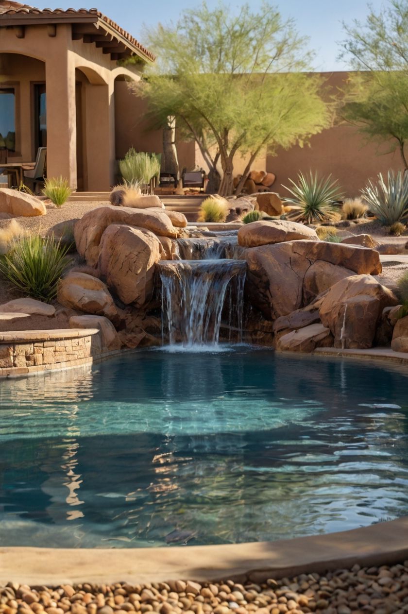 Have you ever thought about turning your backyard into a peaceful oasis with a desert theme pool? You can really create a relaxing retreat by incorporating things like rock formations and local plant life to enhance the overall vibe.