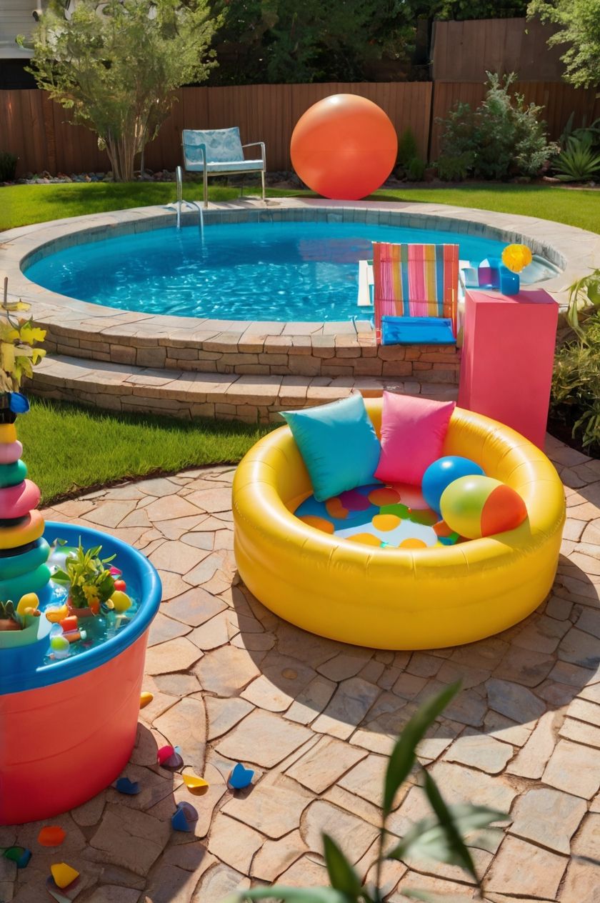 You know, putting some landscaping and decking around the pool can really amp up its look. Adding some plants can also give it a nice, peaceful vibe. And hey, why not throw in some bright colors or theme decor to really make it your own?