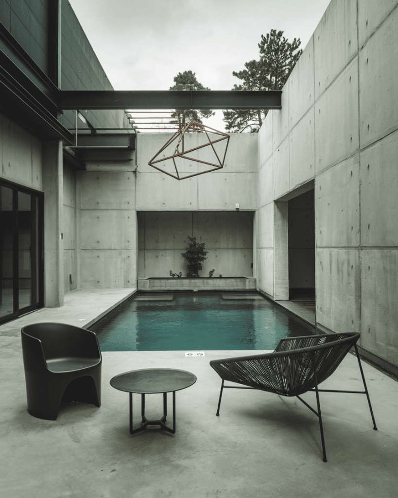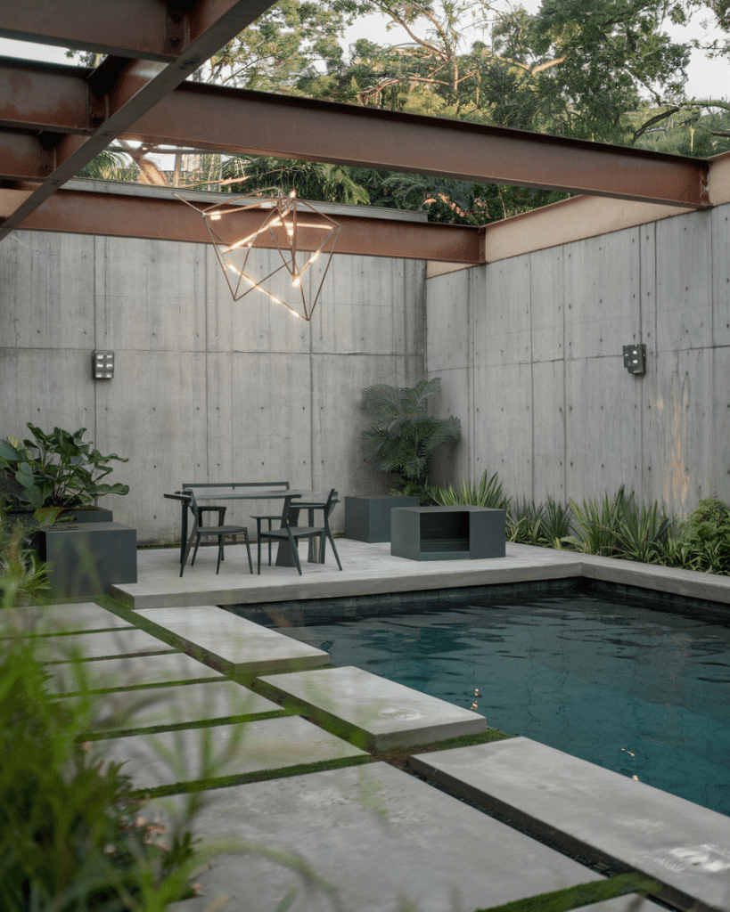 23. Industrial-Style Pool with Concrete and Steel Elements