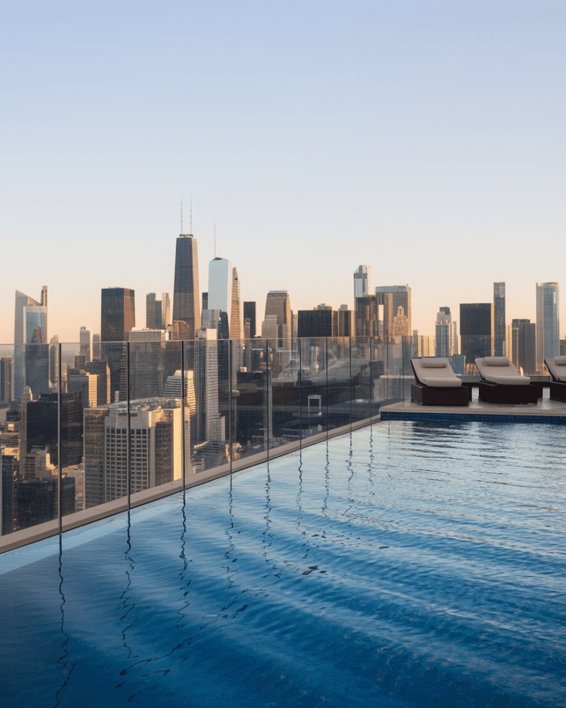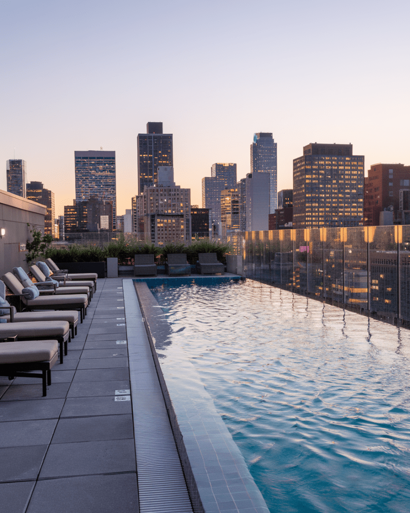 If you live in the city and don’t have a backyard, a rooftop pool can be a cool option. It’s modern and saves space. With cool features like infinity edges and glass paneling, it feels like a fancy getaway. If you’re on a budget, go for a small above ground plunge pool with a chic deck.