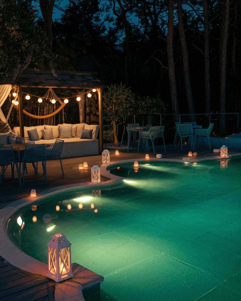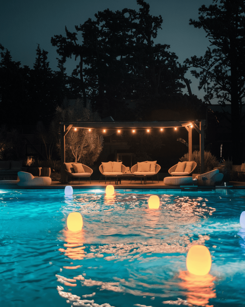 Have you ever seen a pool lit up at night with LED lights? It totally transforms the vibe and gives off a cool luxury feel. You can mix it up with color-changing lights, underwater illumination, or even some floating lanterns. And if you’re trying to save some cash, you can always opt for affordable solar-powered lights to add a nice glow without bumping up your energy bill. It’s a great way to create a relaxing nighttime oasis without breaking the bank.