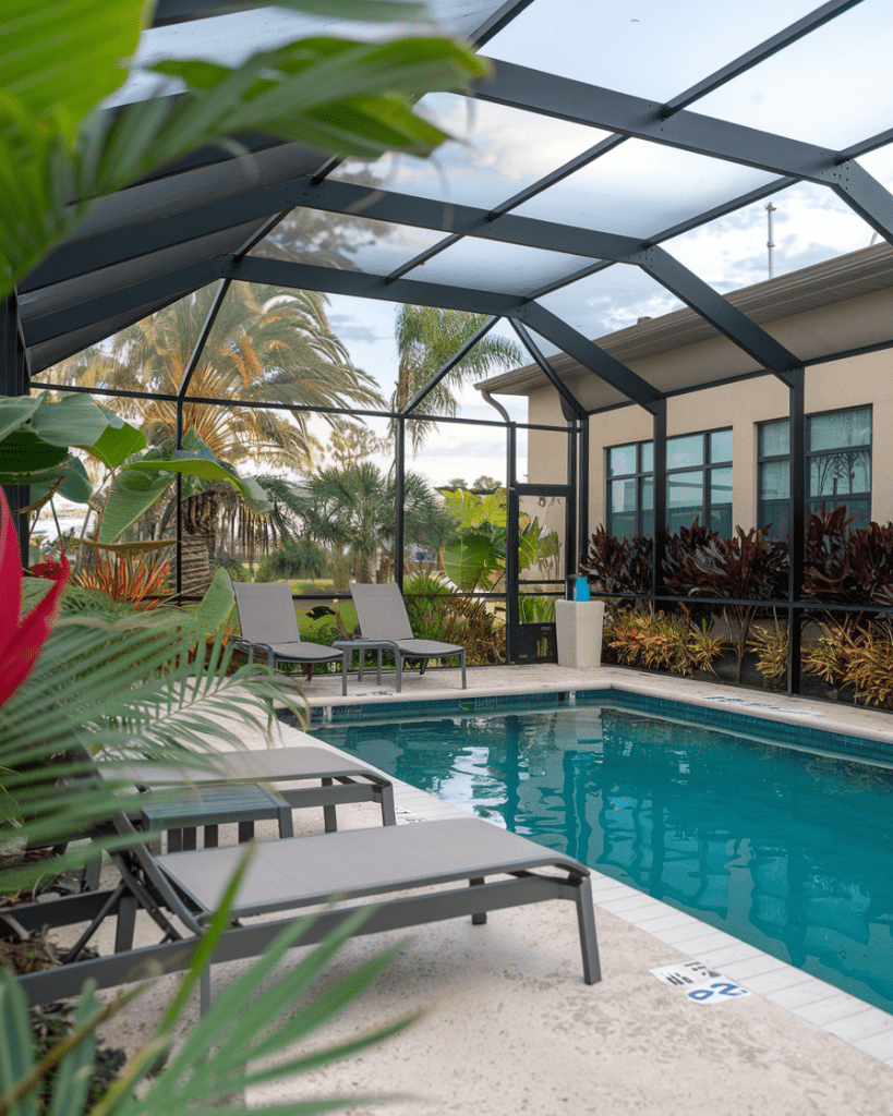 A screened-in pool is a great choice for places with crazy weather or lots of bugs. It keeps you protected but still lets in fresh air. Especially popular in humid spots like Florida and Australia, where mosquitos are a pain. And if you go for a retractable screen, you can enjoy your pool all year round.