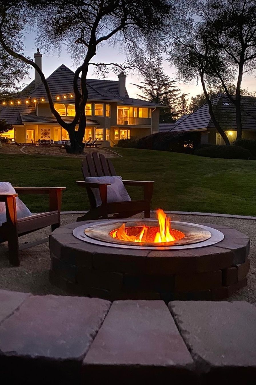Isn’t this fire pit setup just the coziest thing? I love how they stacked a few bricks and set up those comfy Adirondack chairs – it totally transforms that little patch of lawn into the perfect spot to relax in the evenings. Surrounded by gravel and that soft, relaxing lighting from the house, it’s such a peaceful and charming little area. And the best part? It looks so put-together and inviting without having to do a whole overhaul of the backyard. Just perfect for those chilled-out nights with friends or family.
