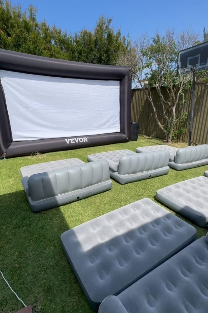 Hey there! Check out this awesome inflatable screen and air-couch duo that makes movie nights a breeze and won’t break the bank. The Vevor screen is huge and sets up in no time, while the air loungers and mattresses provide cozy seating that you can easily move around without lugging heavy indoor furniture outside. Perfect for entertaining kids, hosting sleepovers, or simply enjoying a chill evening under the night sky. Fun times ahead!