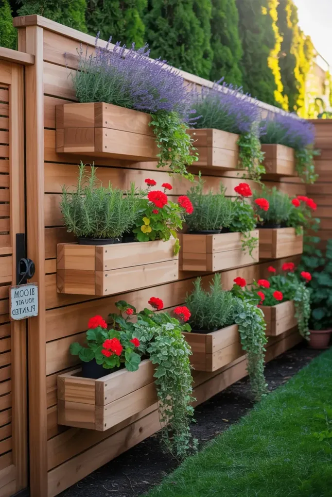 You know what’s really cool? Adding planter boxes to your privacy fence can totally change the vibe and make it look like a colorful garden wall! Plus, you get to have your own little flower or veggie patch right there. It’s also a nice way to make your fence seem less harsh and more inviting. Win-win!