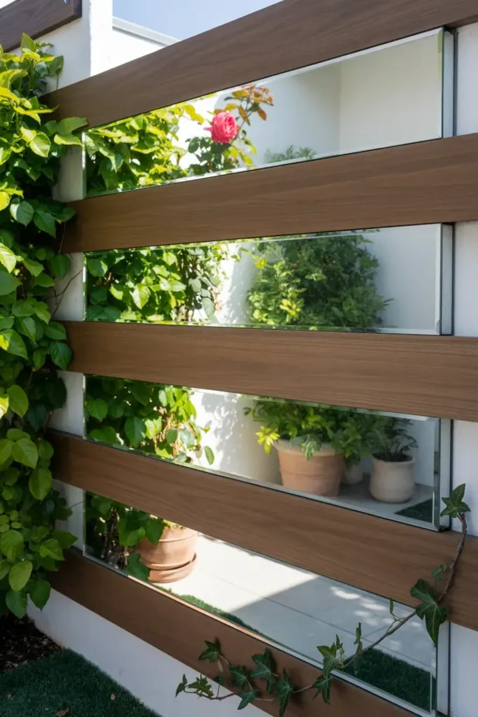 If you’re looking to give your privacy fence a modern and cool vibe, you should totally think about throwing in some mirrored panels! They bounce light around and make your outdoor area seem bigger and more open. For this trick to work, you’ll need outdoor-friendly mirrors like the ones made for the outdoors. They’re tough enough to handle all kinds of weather, so your fence will stay looking fly no matter what Mother Nature throws at it!