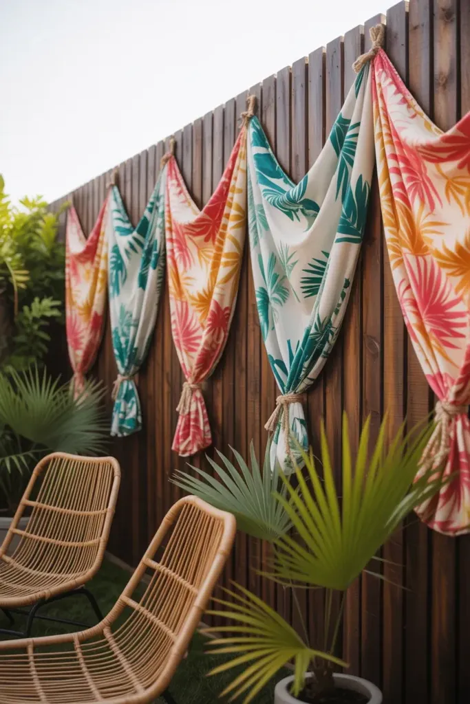 Looking to liven up your privacy fence? Why not try adding some outdoor fabrics for a pop of color! You can drape some colorful fabric or use fabric panels to create a cozy and welcoming vibe while still letting the sunlight peek through. It’s a great idea for anyone who loves to relax and unwind in their outdoor space.
