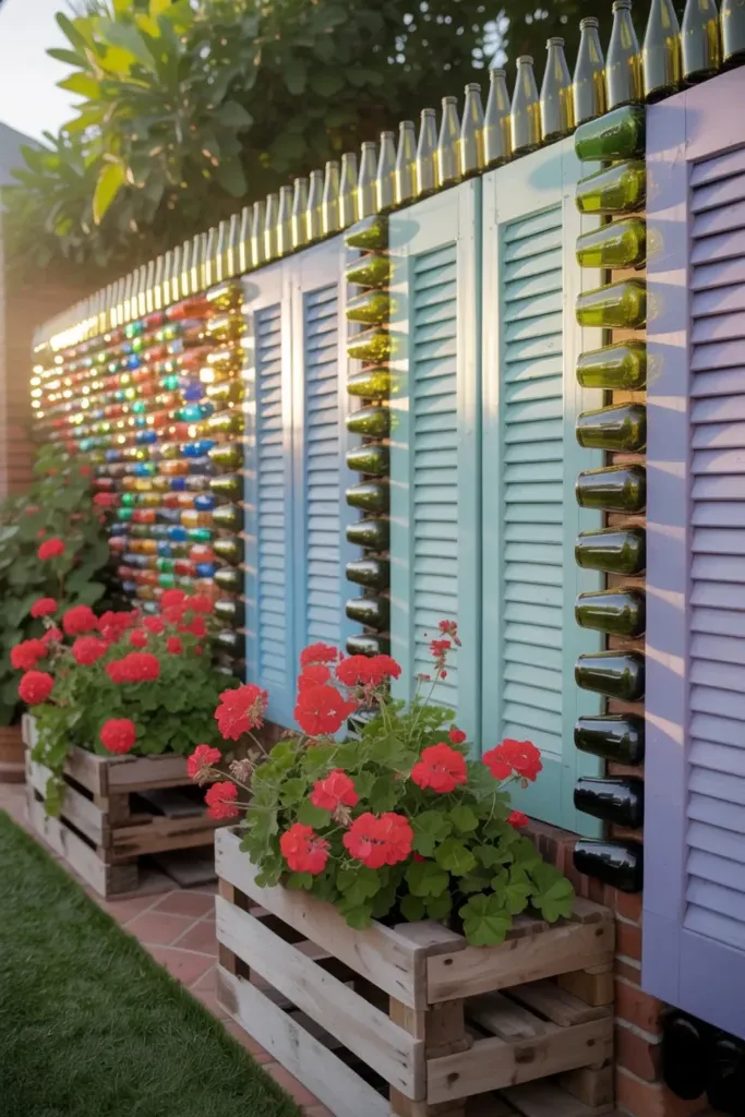 Why not get a little crafty and eco-friendly by using recycled materials to spruce up your fence decor? Think outside the box and repurpose items like old pallets, bottles, or shutters to give your backyard a unique and sustainable look.